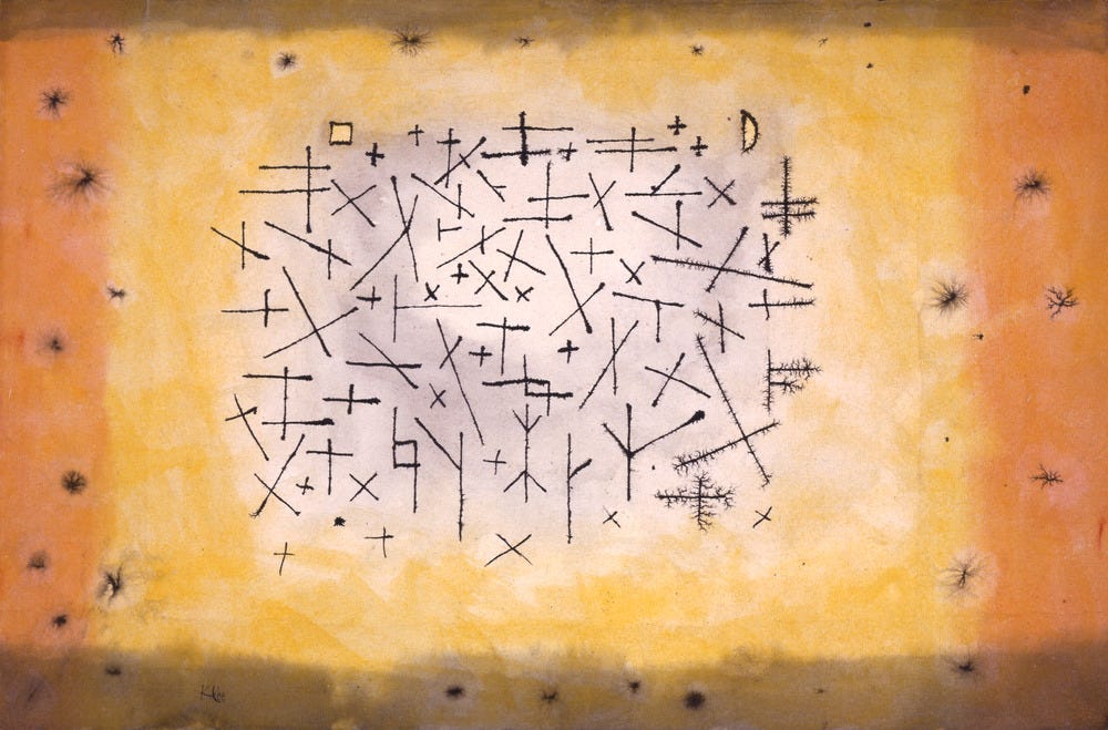 Six years later, Klee produced another painting, Collection of Southern Signs (header image), that looks astonishingly as if he had been reading Mark Changizi’s blog. Possibly inspired by travels in Tunisia and Southern Italy, the painting features symbols strikingly similar to the proto-letters that were the forerunners of modern alphabets. Sarah McGavran writes: